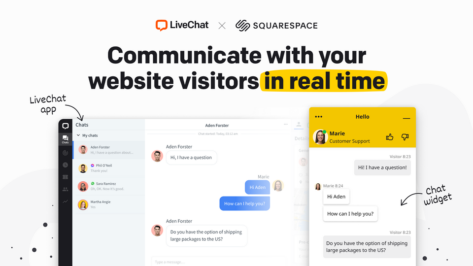 Follow the app tutorial with setup instructions on how to use and properly configure this app with your LiveChat account. To get help and support contact Text. You can also suggest improvements or request new features in the upcoming versions of Squarespace.