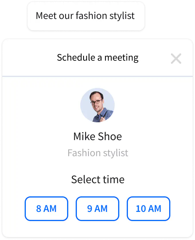 Apps that are temporarily displayed in the chat widget so the customer can complete an action like paying or scheduling a meeting.