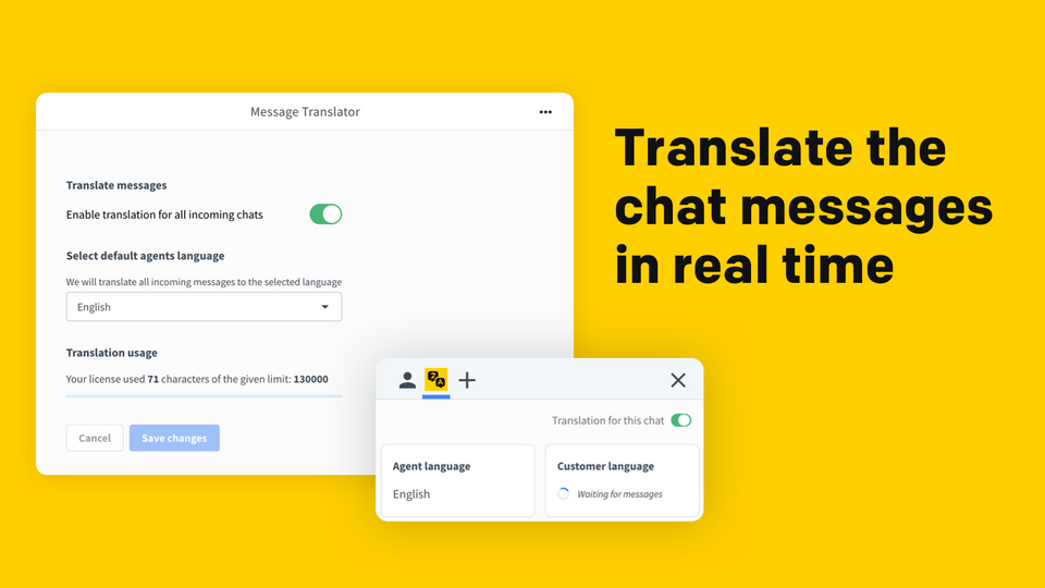 Thanks to the integration between Translation Service and LiveChat, you can freely talk with your customers despite the language differences. Seamless translation process makes it easy for your agents to chat with all customers from anywhere in the world.