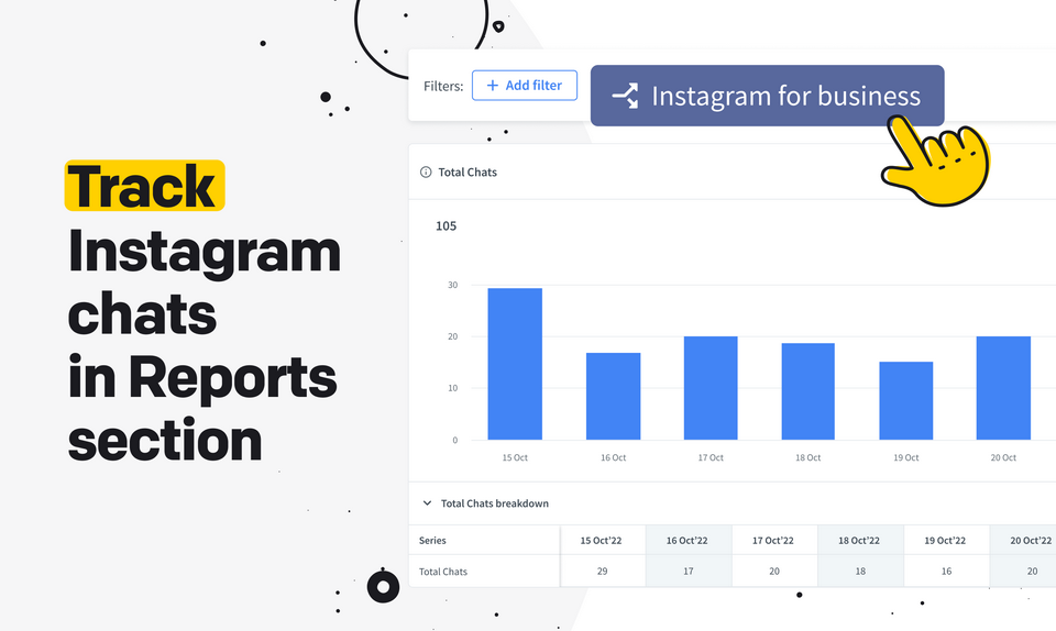 Connects Instagram DMs with LiveChat, so agents can receive and respond to messages directly from LiveChat, without using separate apps. You can add quick replies and automated responses with ChatBot support. Story Mentions and Story Replies are also forwarded to chats.